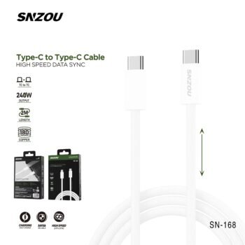 The SN-168 Data Cable delivers ultra-fast 240W charging with high-speed data synchronization. Designed with 180 copper core reinforcement, it ensures durability and stable power delivery.