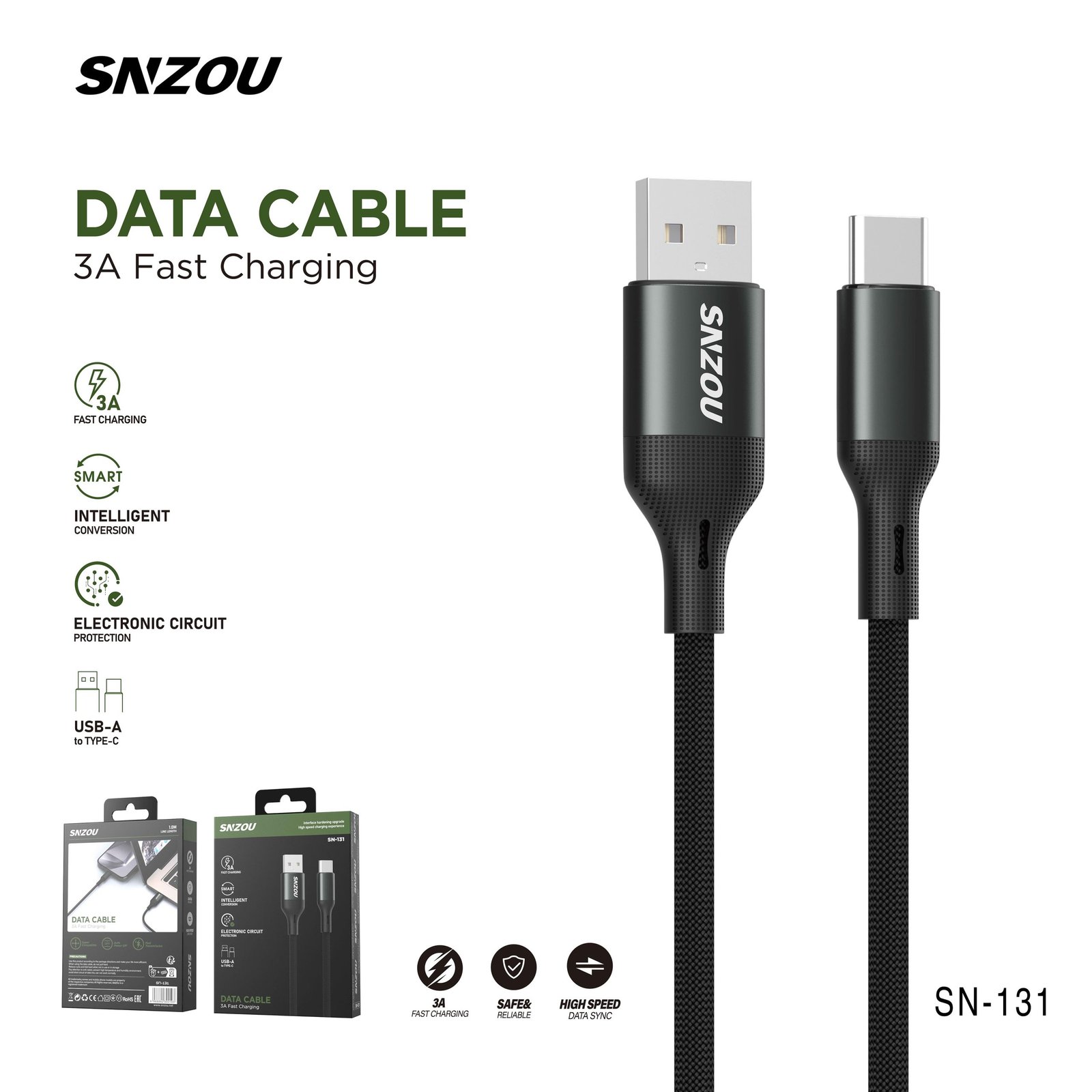 Snzou SmartCharge 3A USB-A to Type-C Cable is designed for fast charging and data transfer.